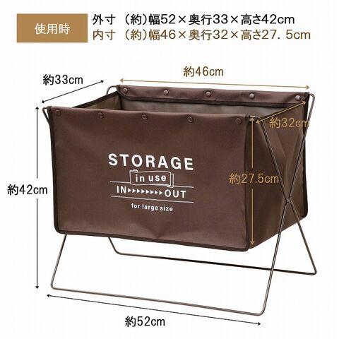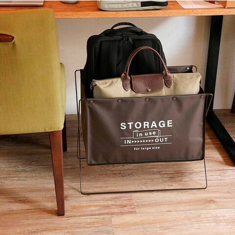 バッグ・マフラーやコートといった小物・洗濯物などいろいろな物を直接床に置かず、簡単に収納できるラック。大きい収納口でたっぷり収納。不使用時はコンパクトに収納可能。荷物等が直接床に触れないので清潔!マガジンラックやお部屋の小物収納など、いろいろなシーンで大活躍。ランドリーラックとしてもお使いいただけます。