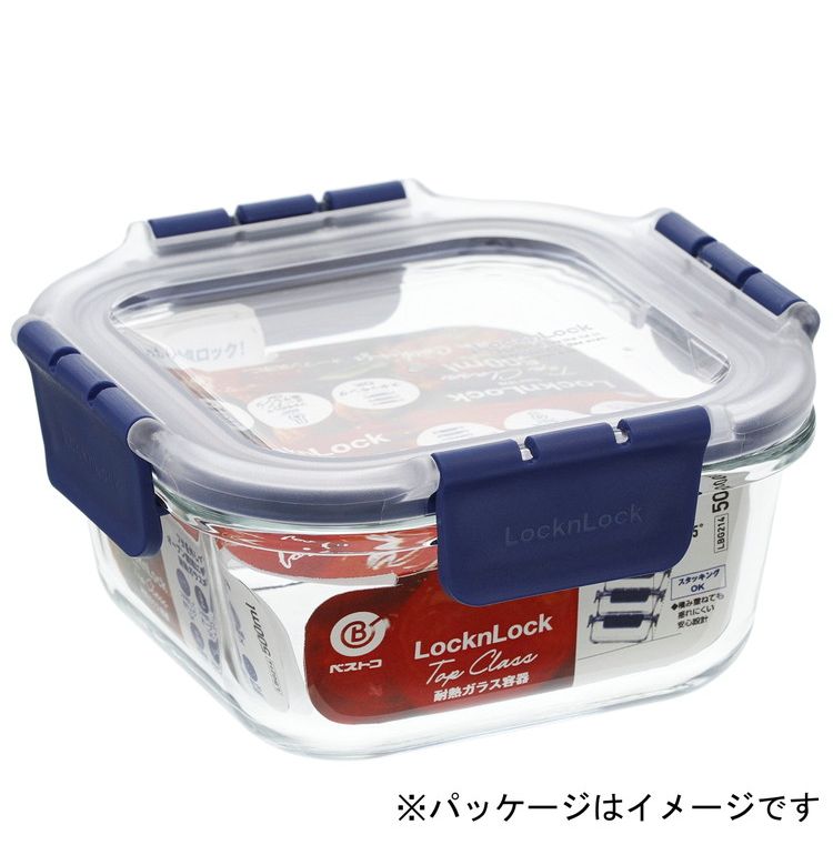 ベストコ ふた付き 耐熱ガラス 保存容器 スクエア 500ml ロック&ロック トップクラス LBG214