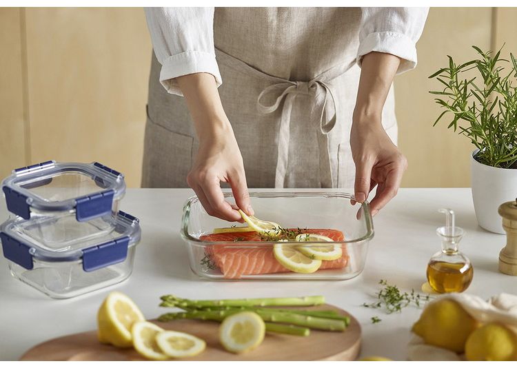本体(耐熱温度400℃、耐熱温度差120℃、耐冷温度-20℃)、フタ(耐熱温度110℃、耐冷温度-20℃)、パッキン(耐熱温度200℃、耐冷温度-20℃)フタを外してオーブン調理にも使える耐熱ガラス容器。オーブン・電子レンジでの調理から冷凍室での保存まで色々使えて便利。BPAフリーの為赤ちゃんも安心。液もれ・においもれしにくい安心の6点ロックでしっかり密閉。積み重ねても揺れにくい安心設計。