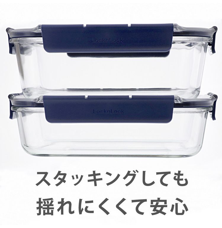 本体/耐熱ガラス、フタ/コポリエステル樹脂 ・ポリプロピレン、パッキン/シリコーン本体(耐熱温度400℃、耐熱温度差120℃、耐冷温度-20℃)、フタ(耐熱温度110℃、耐冷温度-20℃)、パッキン(耐熱温度200℃、耐冷温度-20℃)フタを外してオーブン調理にも使える耐熱ガラス容器。オーブン・電子レンジでの調理から冷凍室での保存まで色々使えて便利。BPAフリーの為赤ちゃんも安心。液もれ・においもれしにくい安心の10点ロックでしっかり密閉。積み重ねても揺れにくい安心設計。