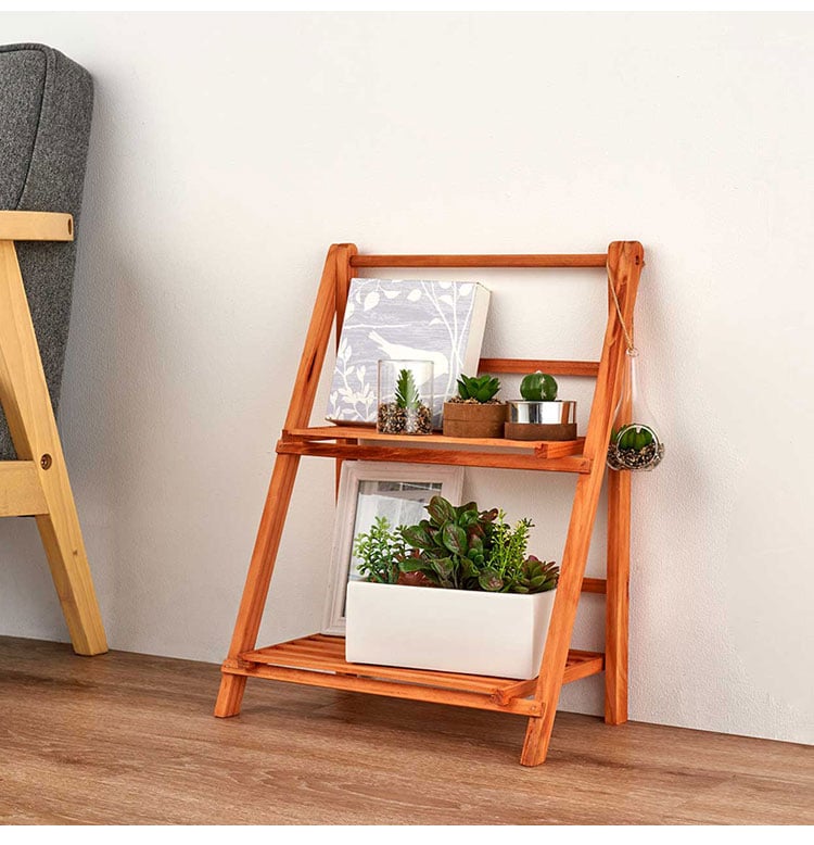 天然木 オープンラック 2段 プランター台 フラワースタンド 花台 ウッドラック ガーデニング ガーデンラック 棚 シェルフ 木製 玄関収納 おしゃれ