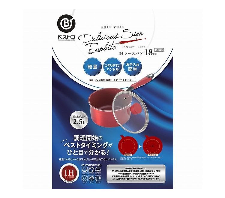 ベストコ 片手鍋 ソースパン 18cm レッド IH対応 NM-112 デリシャスサインエボルト【送料無料】