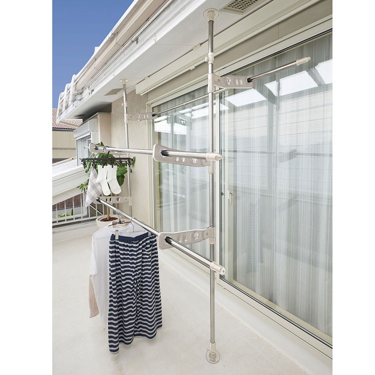 ベストコ ベランダ 突っ張り 物干し ステンレス 取り付け 幅9×奥行44~78×高さ220~300cm 3段タイプ ライトグレー NY-282【送料無料】のレビュー