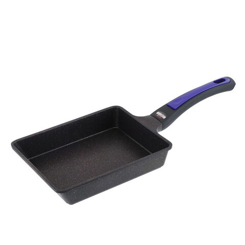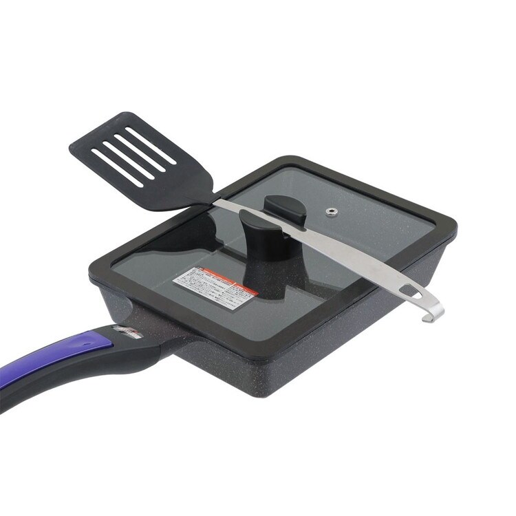 内面はパープルダイヤモンドコート+ゴールドマーブルコート加工(耐摩耗性試験100万回クリア)。外面は汚れが目立ちにくいパープル+ゴールドマーブル加工。ハンドルジョイント部は一体成型で汚れがとりやすくお手入れが簡単。アルミダイキャスト製で、熱変形に強く、全面均一加熱で美味しく調理できます。大きめハンドルで持ちやすく安定性抜群。冷凍餃子1パック(12個)が焼ける大きさです。
