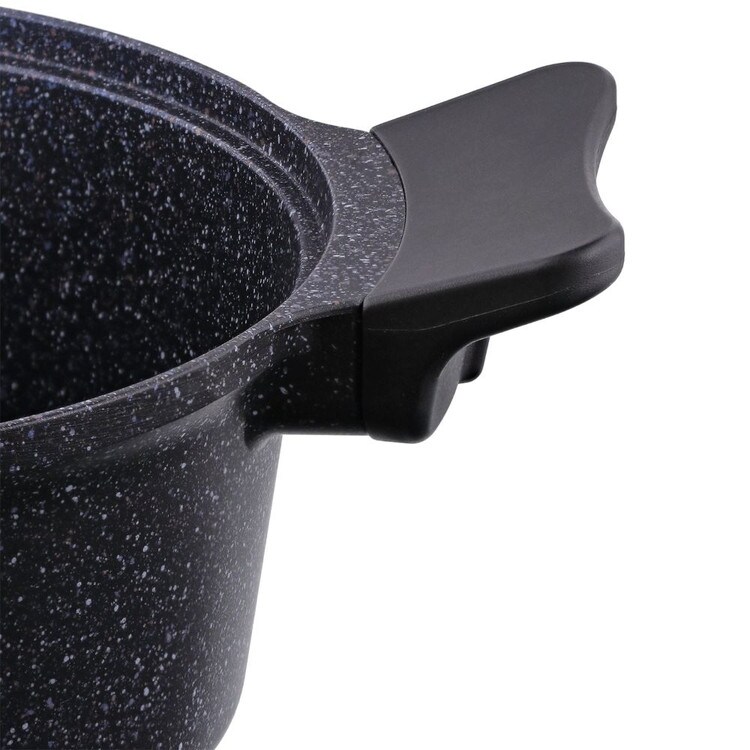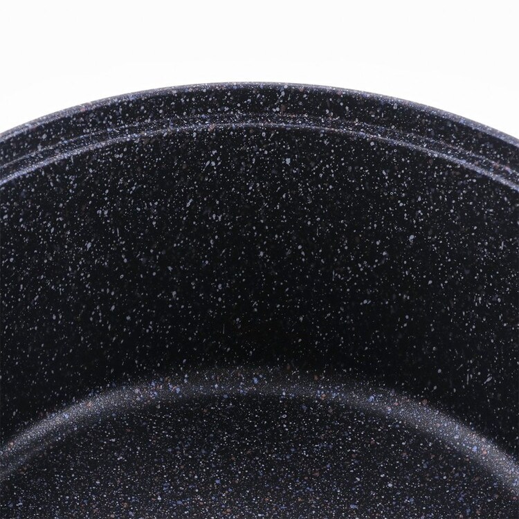 軽くて丈夫で使いやすい!キズに強く焦げ付きにくいからお手入れ簡単。内面はふっ素樹脂塗膜加工+ダイヤモンドコート+マーブルコート。外面はふっ素樹脂塗膜加工+マーブルコート。耐摩耗性試験100万回クリア。ハンドルジョイント部は一体成型で汚れが取りやすいアルミダイキャスト製で、熱変形に強く、全面均一加熱で美味しく調理できます。