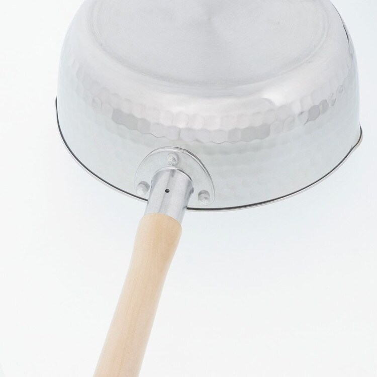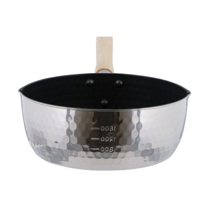 内面ふっ素樹脂加工で扱いやすいステンレス製の雪平鍋。内面ふっ素樹脂塗膜加工はダイキンEK(耐摩耗性試験50万回クリア)を使用。傷に強く汚れがこびりつきにくい。角の丸い金属ヘラOK。内面には便利な分量目盛り付。汁物を注ぐときに便利な両側注ぎ口付。アルミ槌目加工で優れた強度。