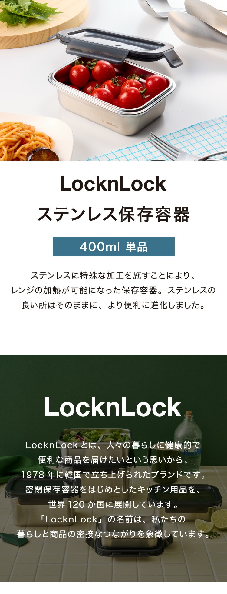 電子レンジ対応 ステンレス 保存容器 400ml 食洗機対応 オーブン対応 保存 調理 密閉 弁当箱 ランチ フードコンテナ スタッキング 収納 韓国発 LocknLock おしゃれ ステンレス製