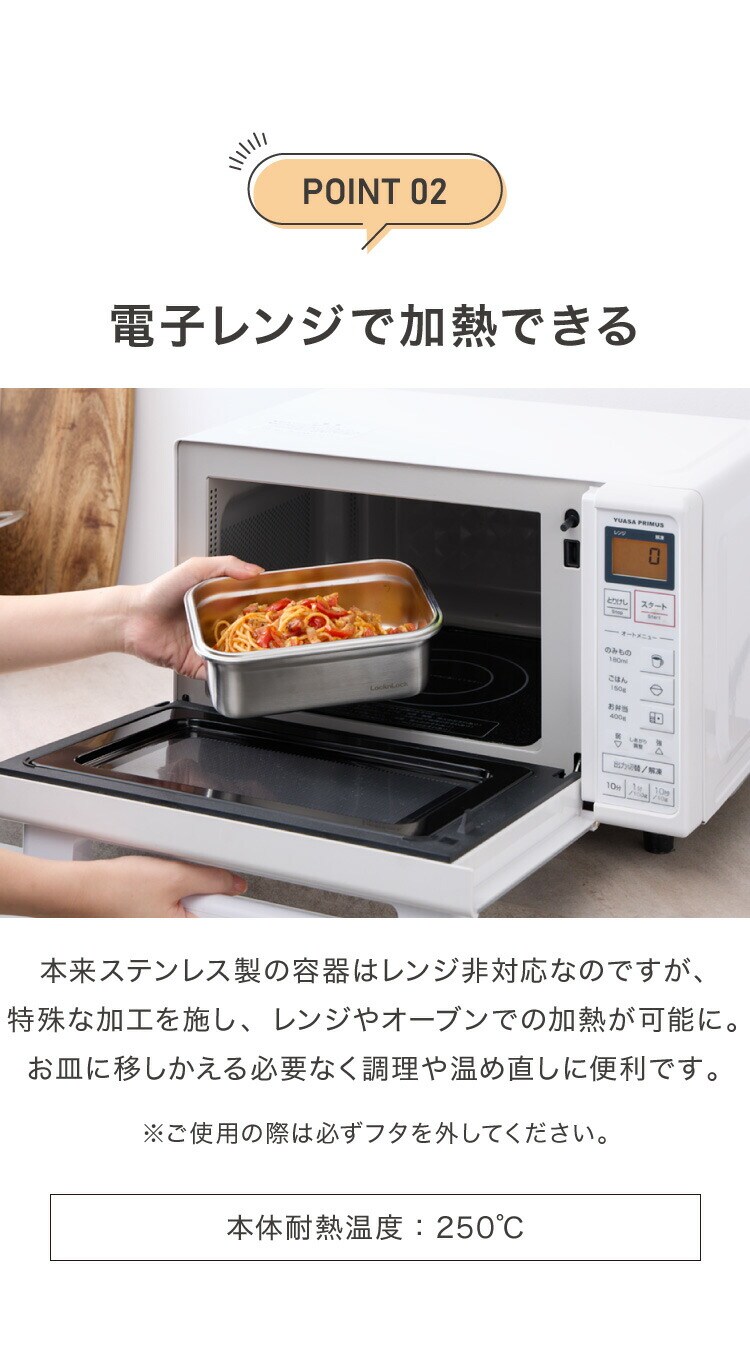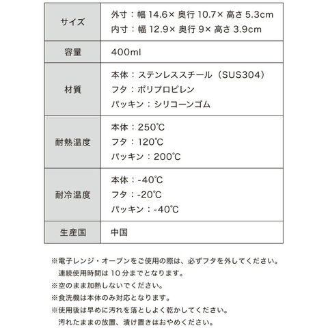 ※電子レンジ・オーブンをご使用の際は、必ずフタを外してください。連続使用時間は10分までとなります。