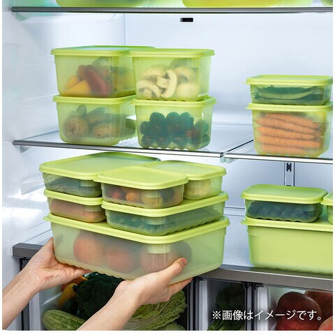 新鮮度を長期間キープする驚きの保存容器。食材を長期間フレッシュにキープ。底面の波型仕様で食材をさらに新鮮にキープ。環境ホルモンの一種“BPA”を含まない。冷凍室・食洗機も使用OK!電子レンジはフタを外して本体のみ使用可能(使用時間は2分を推奨)