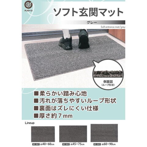 ベストコ 玄関マット 屋外 ソフト 泥落とし 滑り止め 45×75cm グレー ND-3842【送料無料】