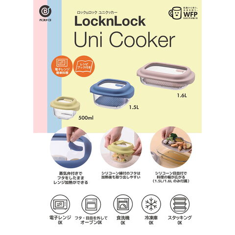 ベストコ ガラス 保存容器 500ml イエロー レシピ付き 電子レンジ オーブン 食洗機対応 LNG481 ロック&ロック ユニクッカー【送料無料】