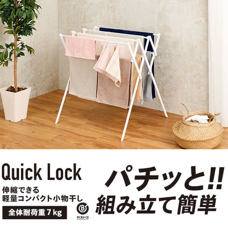 Quick Lock 伸縮できる軽量コンパクト小物干し 幅51~77cm 奥行65cm 高さ79cm ホワイト 室内 スタンド ハンガー 軽量 コンパクト ステンレス 伸縮 物干し 室内干し 部屋干し 物干しスタンド NY-325【送料無料】