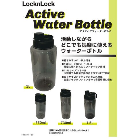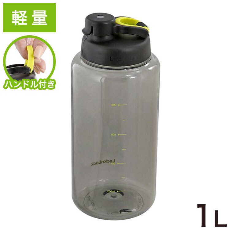 ロック&ロック ウォーターボトル 水筒 軽量 1L ABF615BLK Active 大容量 ブラック お手入れ簡単 ハンドル付き メモリ 持ち歩き 丈夫 直飲み デスクワーク スポーツ クリアボトル トライタン