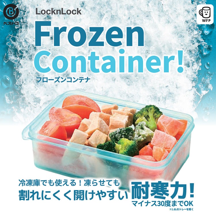 凍らせても割れにくく開けやすい「耐寒力」抜群のフローズンコンテナ シリーズ!冷凍庫から出してすぐ使える柔らかい本体の素材で割れにくく開けやすい。※本体はポリプロピレン素材に柔軟性の高いエラストマー配合食材がくっつきにくい波型底面設計。フタも柔らかくて開けやすい!ラベルを貼って保存日の管理に便利なネームタグ付き!