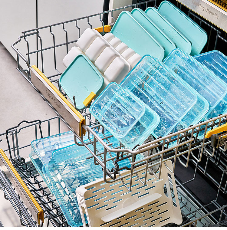 食洗機対応でお手入れ簡単。ふた付きでスタッキングできる為、冷凍庫の中をきれいに整理整頓できます。