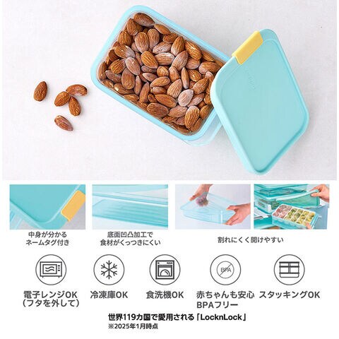 ロック&ロック 冷凍 保存容器 750ml 電子レンジ 食洗機対応 ブルー フローズン コンテナ フードコンテナ 角容器 電子レンジ対応 解凍 食品保存 冷凍保存 作り置き お弁当 スタッキング 積み重ね