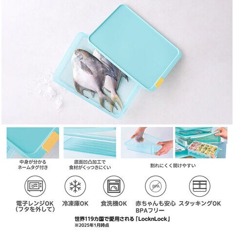 ロック&ロック 冷凍 保存容器 2.2L 電子レンジ 食洗機対応 ブルー フローズン コンテナ フードコンテナ 角容器 電子レンジ対応 解凍 食品保存 冷凍保存 作り置き お弁当 スタッキング 積み重ね