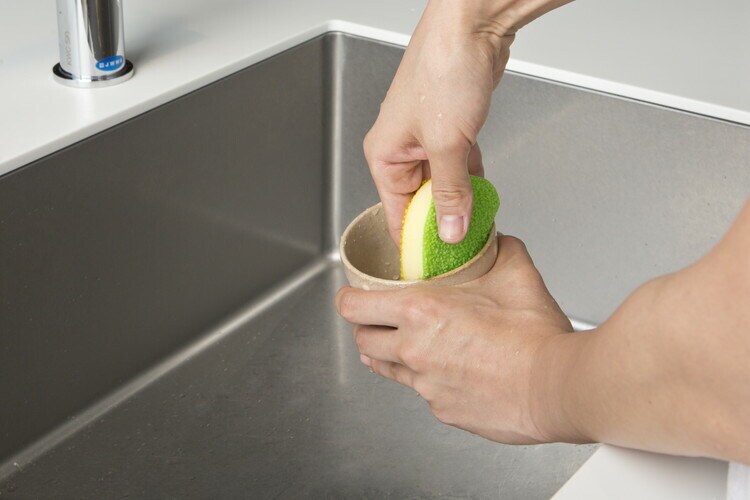 急須や湯のみ茶碗が洗いやすい小さめサイズ。折り曲げて使ってもOK。