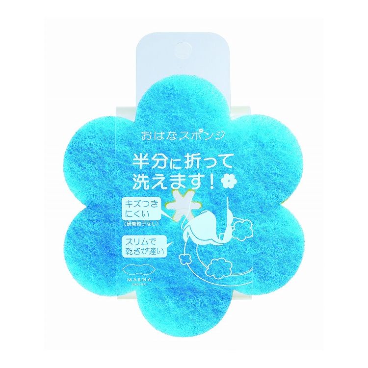 マーナ 日本製 おはなスポンジ B ブルー K364B おはな 折り曲げて MARNA かわいい おしゃれ