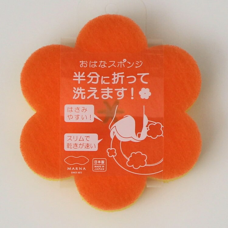 マーナ 日本製 おはなスポンジ O オレンジ K364O おはな 折り曲げて MARNA かわいい おしゃれ