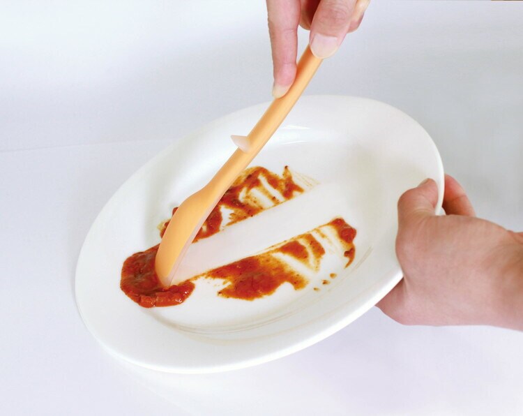 スプーンの先がスパチュラ形状なので、ペースト状でもかき取りやすく、食材がほぐしやすい。