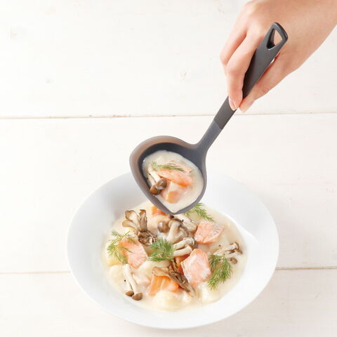 鍋にフィットして、カレーやシチューなどもスクレーパーのように残さずきれいにすくえます。