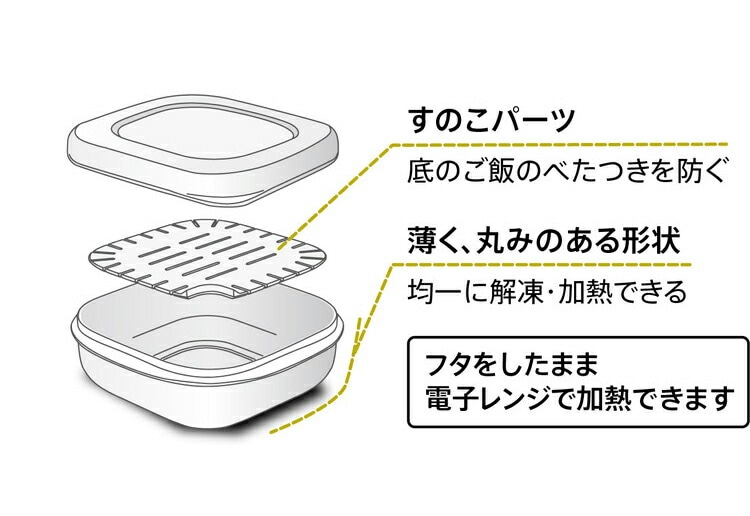 電子レンジで冷凍ごはんをムラなくふっくらと温められる保存容器。