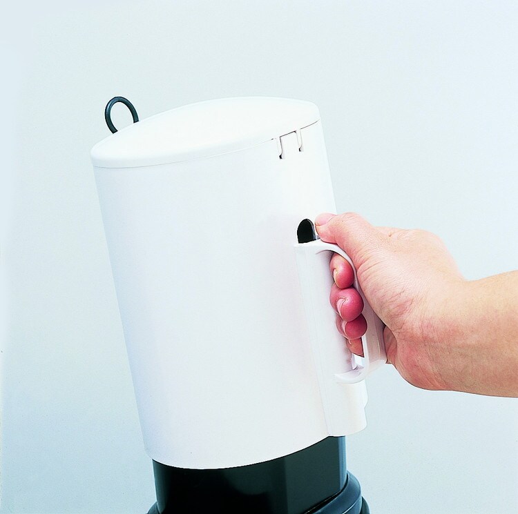 リング状の取手で、ふたに直接触れずに指一本で開閉できます。