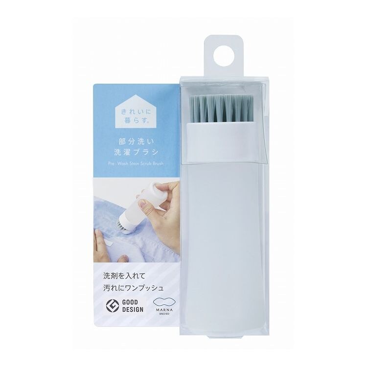 マーナ 部分洗い洗濯ブラシ W ホワイト W624W ワンプッシュ 洗剤 洗濯 襟 袖 MARNA かわいい おしゃれ