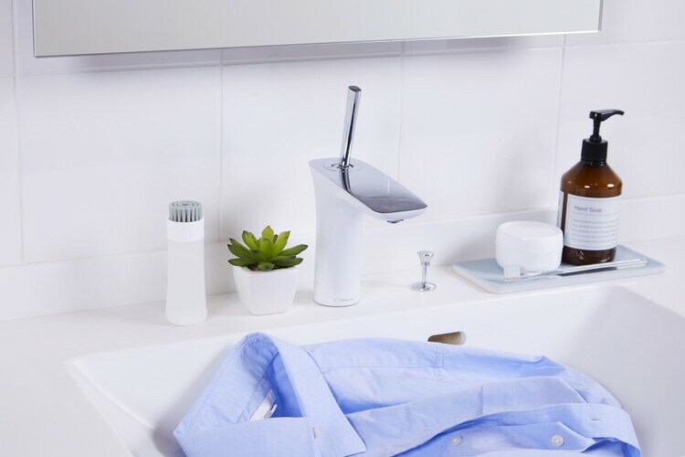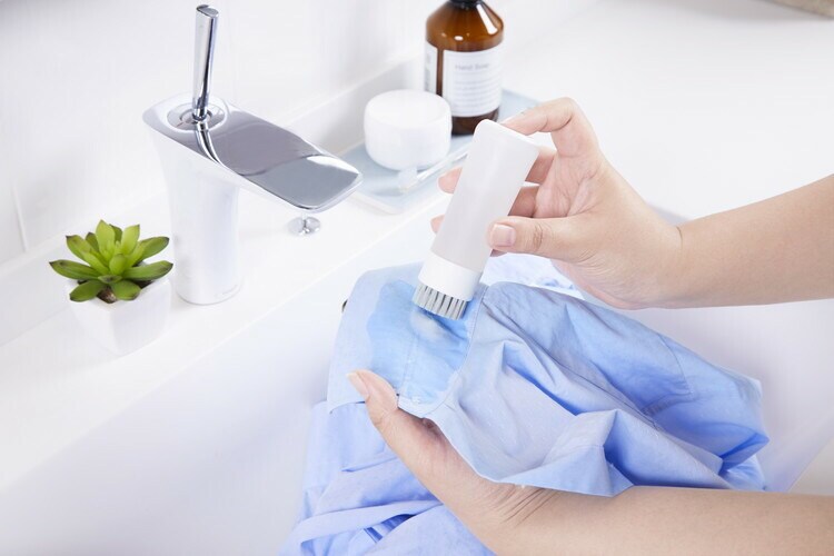 ワンプッシュで洗剤が出る部分洗い用洗濯ブラシ。