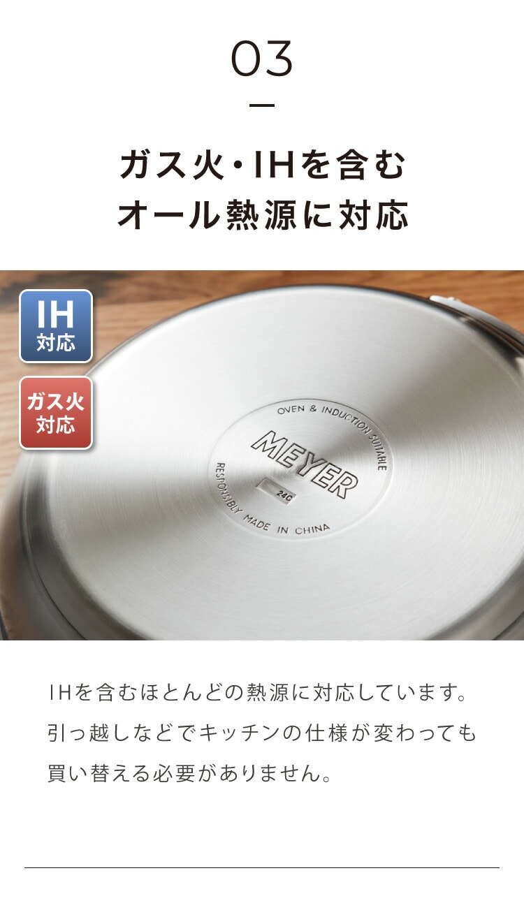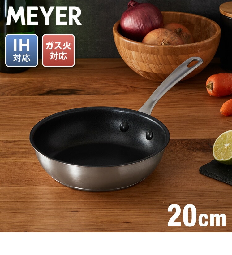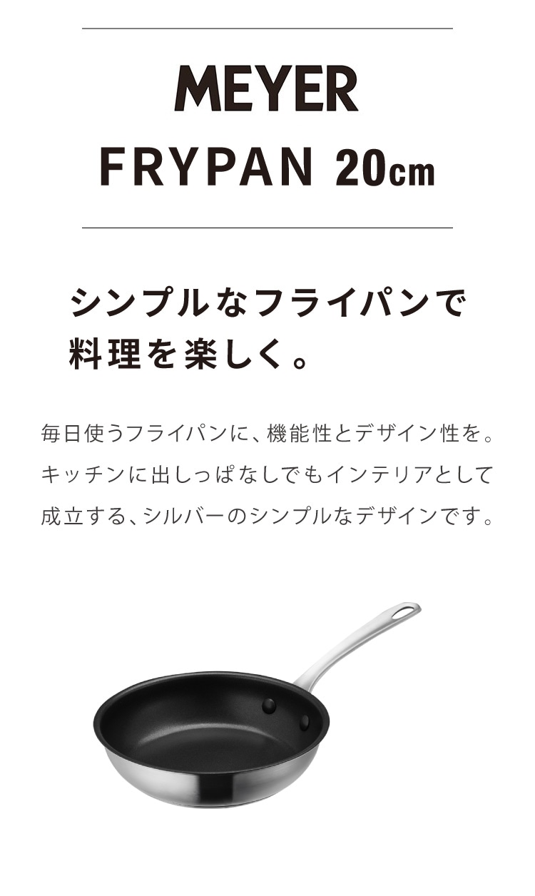 MEYER マイヤー フライパン 20cm 日本製ステンレス採用 ガス火 IH対応 オール熱源対応 PFOAフリー テフロン フッ素 焦げ付かない ステンレス シルバー シンプル おしゃれ【送料無料】