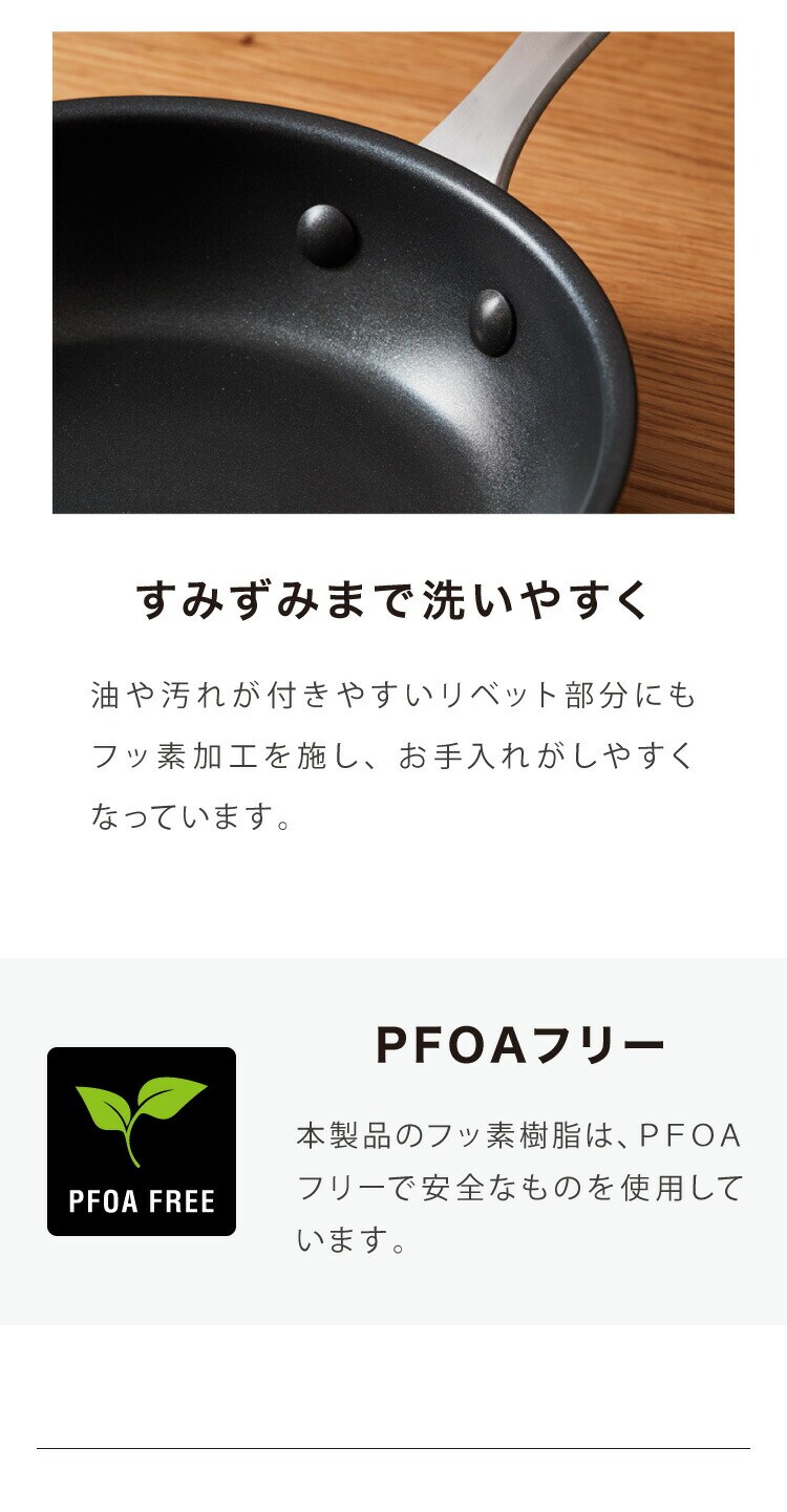 油や汚れがつきやすいリベット部分にもふっ素樹脂加工を施しています。