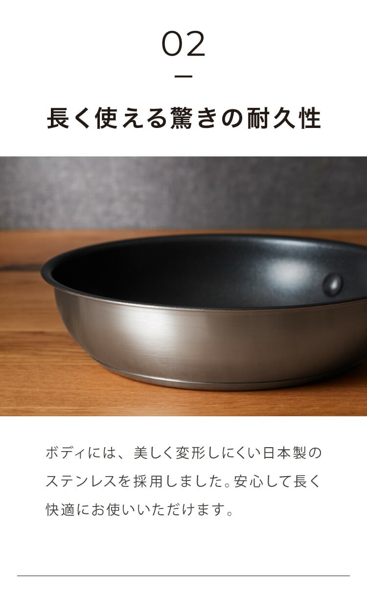 ボディは美しく変形しにくい、安心の日本製ステンレスを採用。