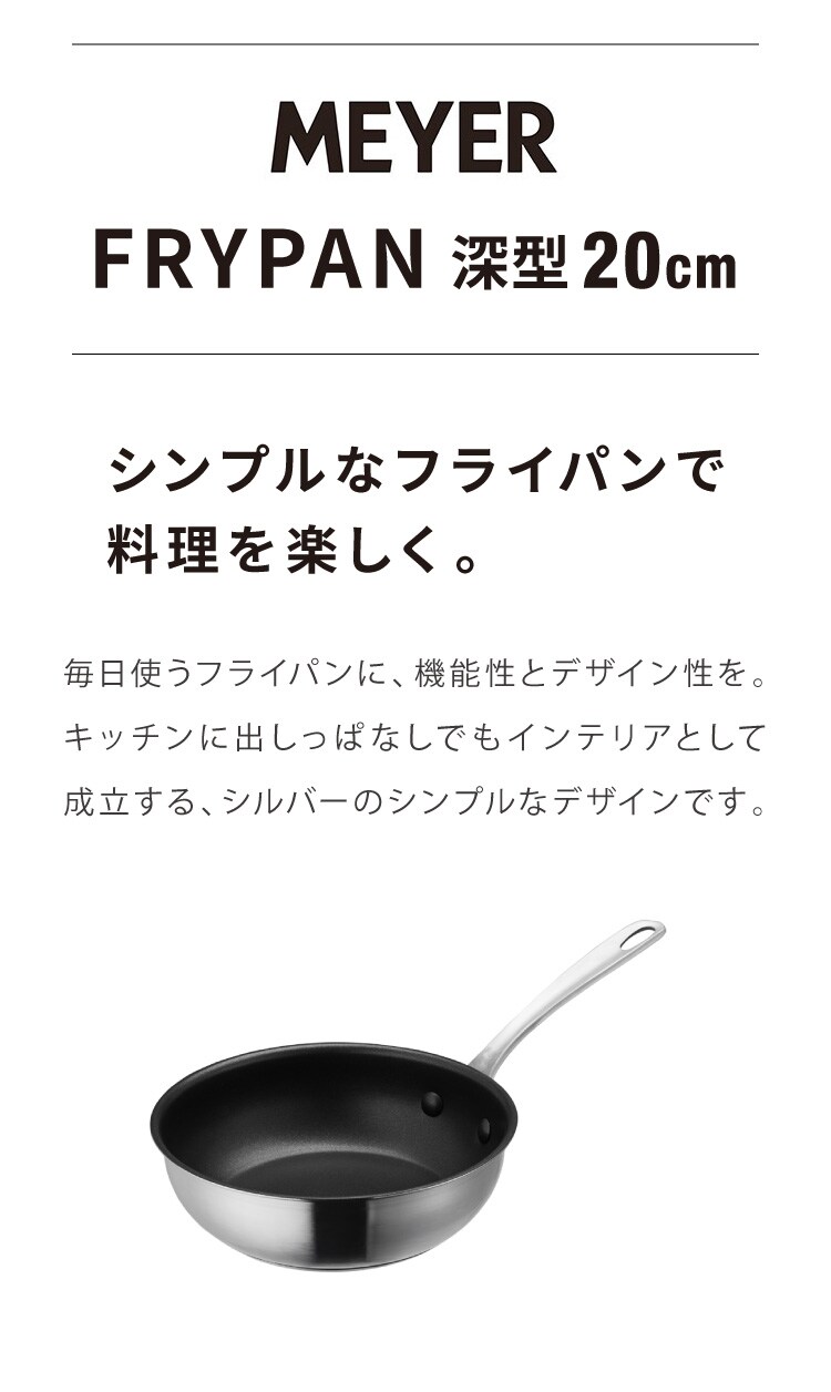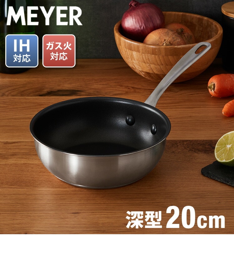 MEYER マイヤー 深型フライパン 20cm 日本製ステンレス採用 ガス火 IH対応 オール熱源対応 PFOAフリー テフロン フッ素 焦げ付かない ステンレス シルバー シンプル おしゃれ 炒め鍋 ディープパン【送料無料】