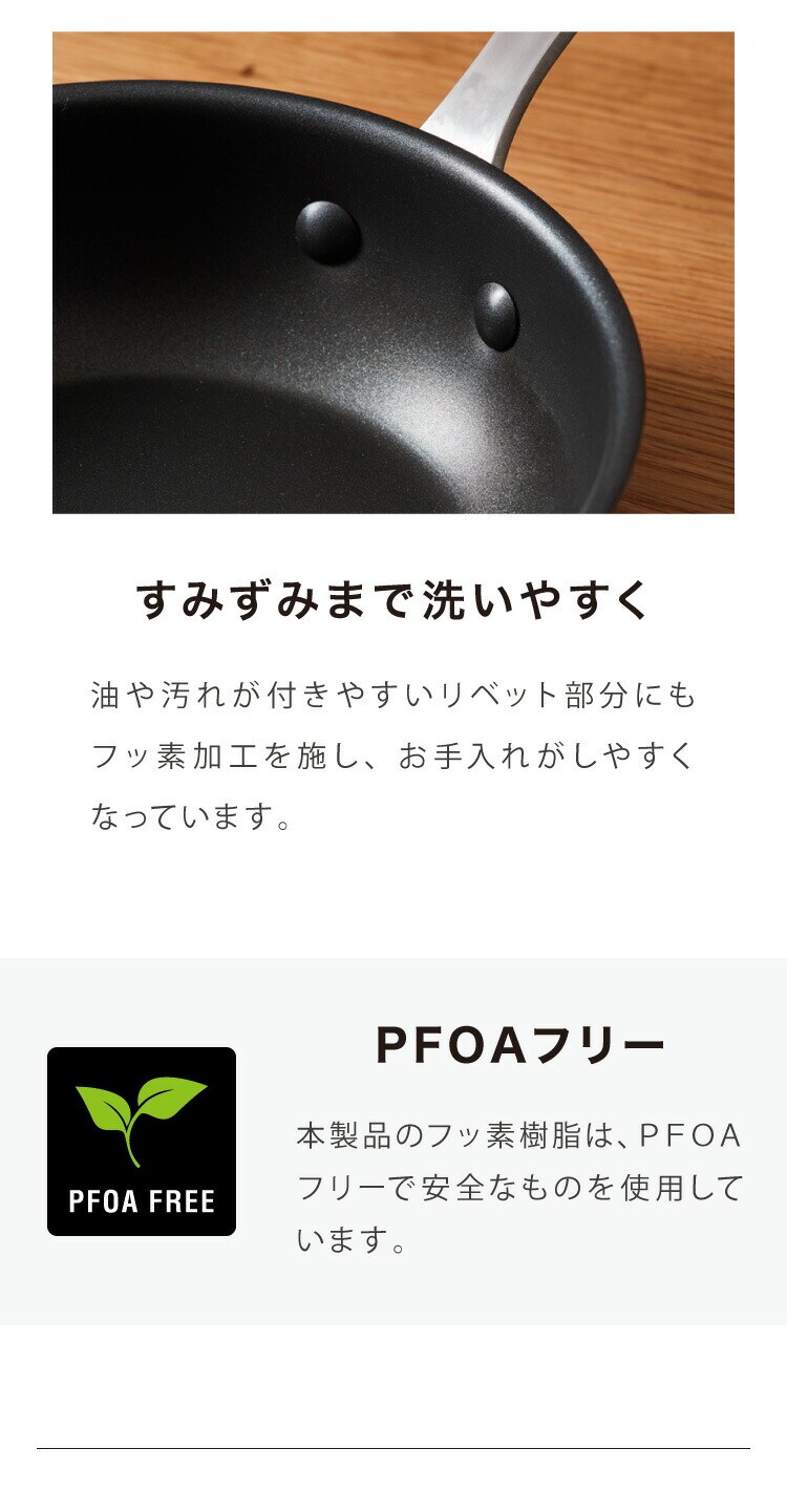 油や汚れがつきやすいリベット部分にもふっ素樹脂加工を施しています。