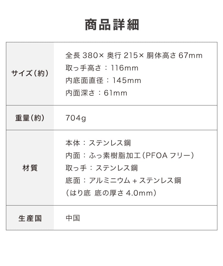 底面:アルミニウム+ステンレス鋼(はり底 底の厚さ4.0mm)