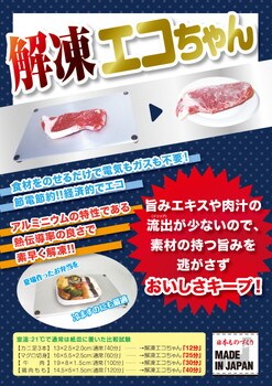 冷凍食品からお肉・お魚まで素早く解凍!!食材をのせるだけで電気もガスも不要!節電節約!!経済的でエコ