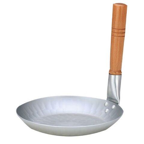 本体:アルミニウム(硫酸アルマイト加工)、表面:槌目加工、ハンドル:天然木