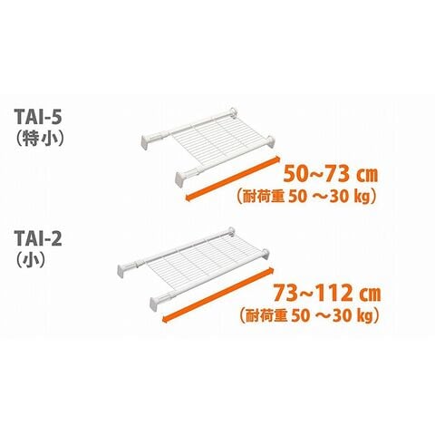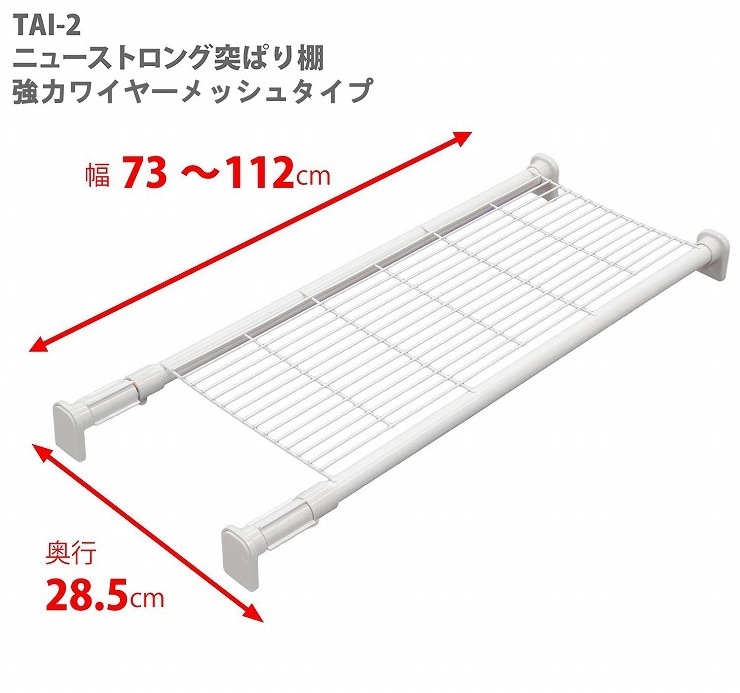 平安伸銅工業 強力タイプの突っ張り棚 メッシュ ホワイト TAI-2 耐荷重50~30kg 取付寸法73~112cm 強力ワイヤーメッシュタイプ【送料無料】