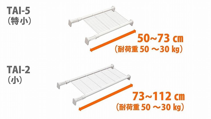 平安伸銅工業 強力タイプの突っ張り棚 メッシュ ホワイト TAI-2 耐荷重50~30kg 取付寸法73~112cm 強力ワイヤーメッシュタイプ【送料無料】のレビュー