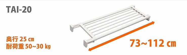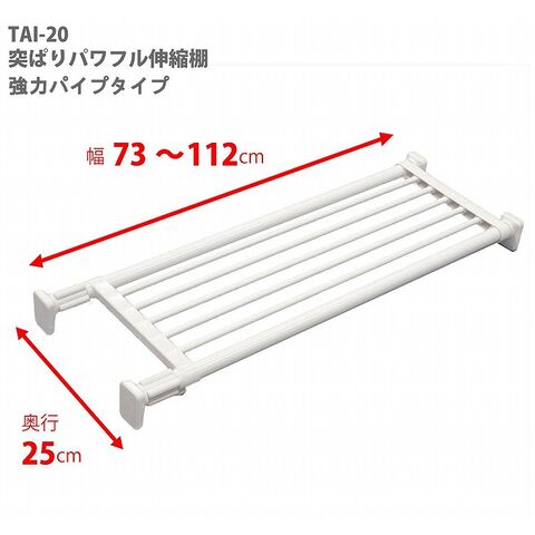 平安伸銅工業 強力突っ張り棚 ホワイト TAI-20 耐荷重50~30kg 取付寸法73~112cm 強力パイプタイプ【送料無料】