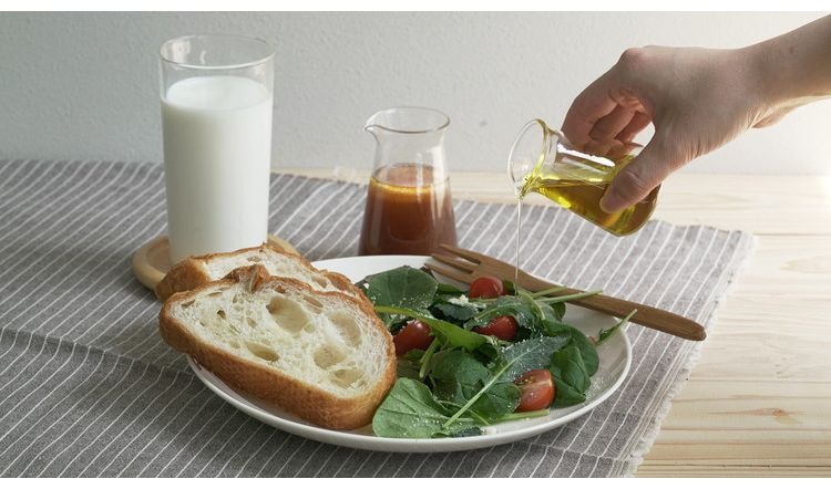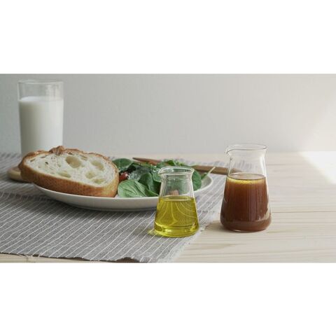 メモリをなくしてシンプルなデザインにしました。ミルクピッチャーや調味料いれなどにご使用いただけます。小さいサイズなので、持ちやすく、注ぎやすい形状です。収納も場所をとりません。透明なのでシンプルでオシャレに。中身が見えるので、食卓を彩ります。耐熱ガラスはにおい移りや色移りがしにくいので衛生的な安心素材です。