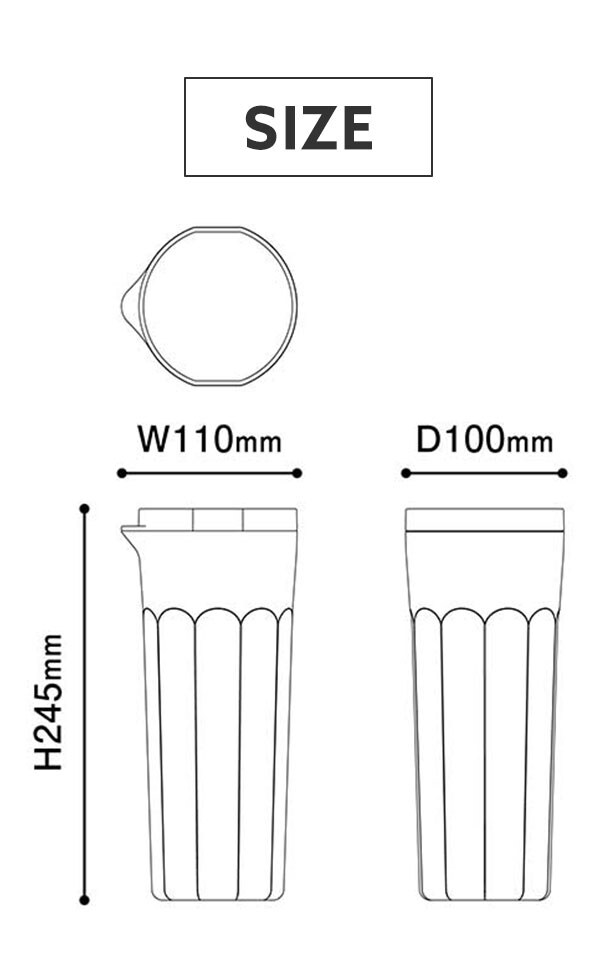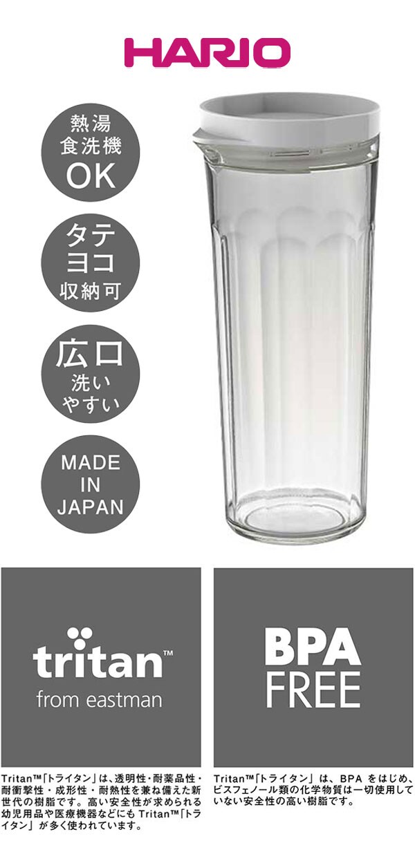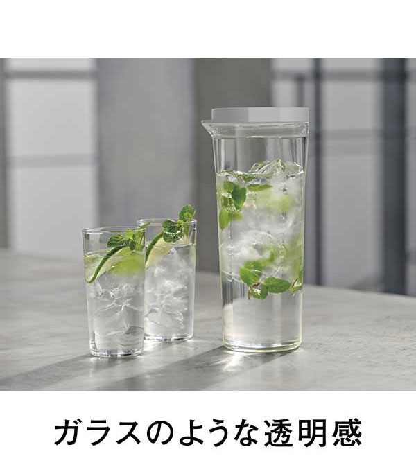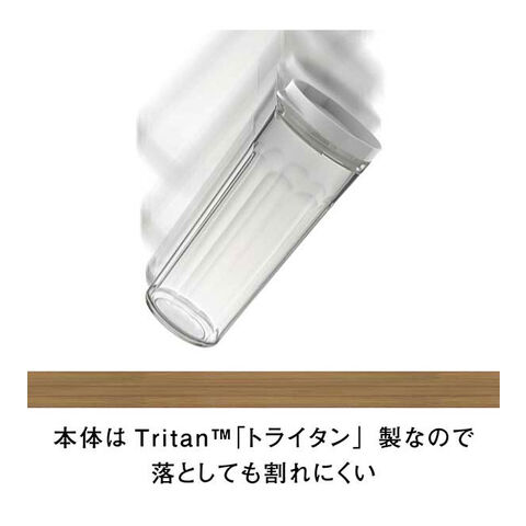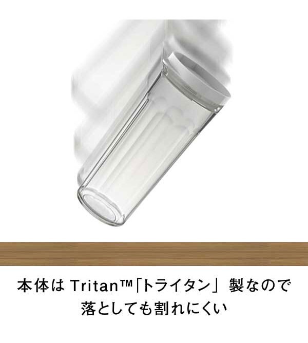 ・透明性・耐薬品性・耐衝撃性・成形性・耐熱性を兼ね揃えた新世代の樹脂「トライタン(PCT樹脂)」を使用した冷水筒です。