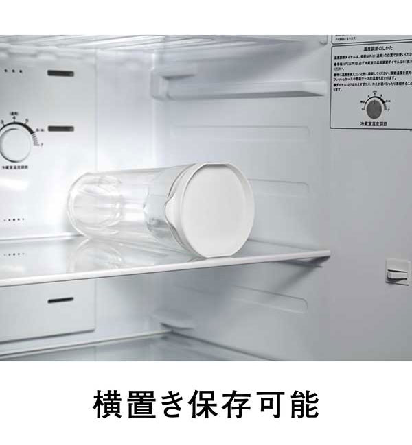 ・冷蔵庫のドアポケットはもちろん、横置き保存も可能です。