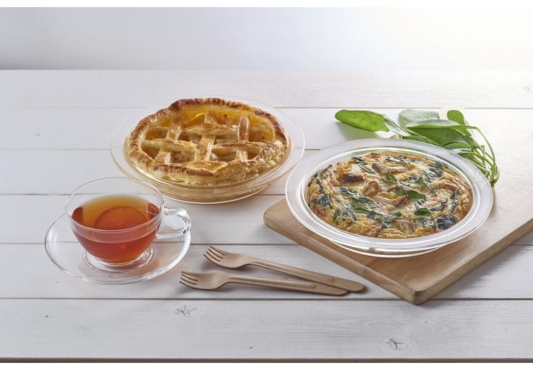 メイドインジャパンの耐熱ガラス製パイ皿です。耐熱ガラスの透明感がお料理の彩りを引き立てます。シンプルなデザインの耐熱ガラス製のパイ皿です。スタッキング可能なので省スペースで収納することができます。日常使いしやすいサイズです。パイはもちろん、パスタなどの麺類やおそばなど、和・洋どちらの料理にも合うデザインです。シンプルなデザインなので調理後、そのまま食卓へ出すこともできます。耐熱ガラス製なので、電子レンジはもちろんオーブンやトースターでの高温調理も可能です。色移りや匂い移りが少ない耐熱ガラスなので、長く使用することができます。