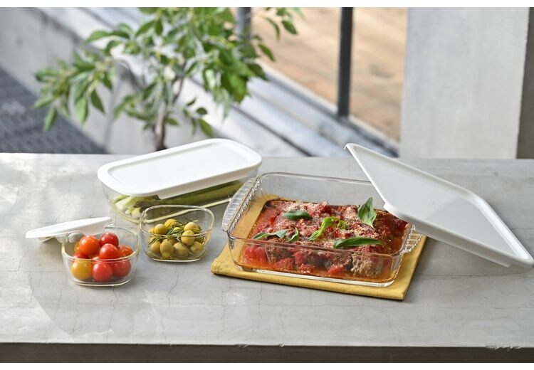 調理、食器、保存としても使える便利な耐熱ガラス製容器、お買い得7個セット。電子レンジにも対応している為、フタをしたままレンジ調理や温め直しが可能です。フタを外して、ガラス本体はオーブン調理もOK。シンプルなデザインなので、食卓に食器としてそのまま並べられます。中身が見えるので、保存の際も何を入れたか一目瞭然。角型の保存容器は冷蔵庫収納にも便利で、スペースにも困りません。耐熱ガラスはにおい移りや色移りがしにくいので衛生的な安心素材です。