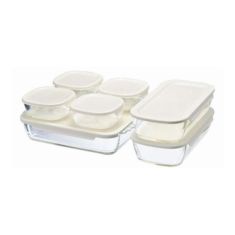 HARIO ハリオ スタッキング耐熱ガラスコンテナ・スクエア 7個セット HKOZ-8002-OW 満水容量KST-25/250ml KSTL-90/900ml HKOZ-200/2000ml オフホワイト 耐熱ガラス保存容器【送料無料】