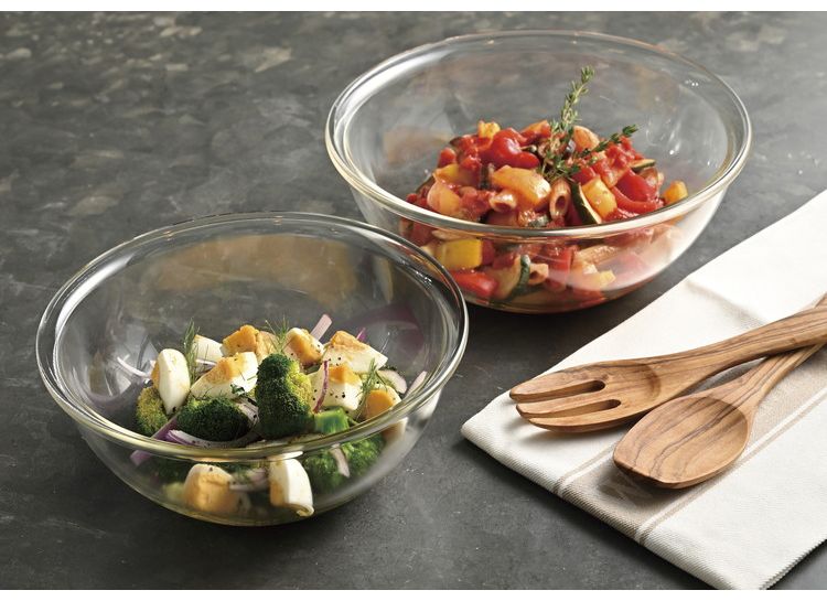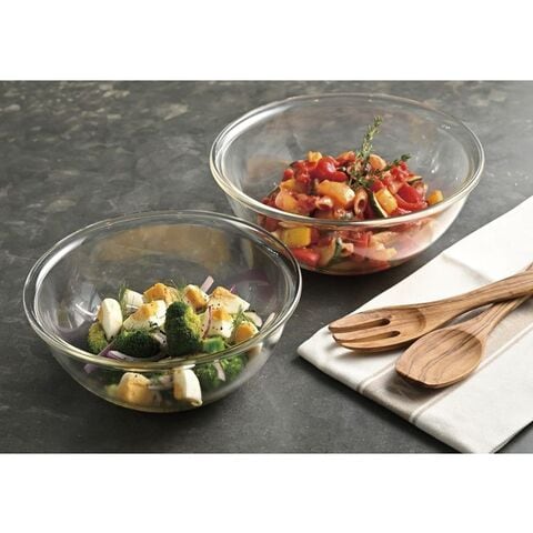 レンジ調理・ミキシング用ボウル・食器としも使える便利な耐熱ガラス製浅型ボウル、お買い得2個セット。浅型なので、ボウルの中でこねるのにも使いやすい形状。また中身が万遍なく広がるので電子レンジで効率よく温めでき、ワンボウルクッキングにもオススメです。調理や下ごしらえだけでなく、サラダボウルなどの食器としても使用ができ、幅広くご使用いただけます。耐熱ガラスはにおい移りや色移りがしにくいので衛生的な安心素材です。