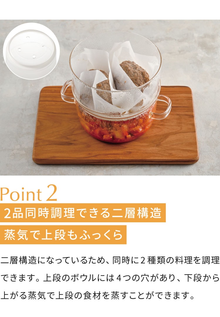 竹などのせいろのように、カビがはえるなどの心配もなく気軽に蒸し料理を楽しめます。