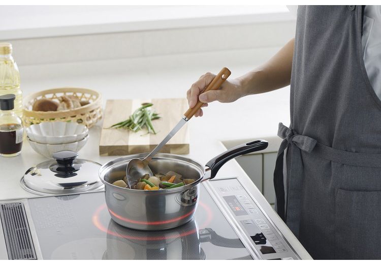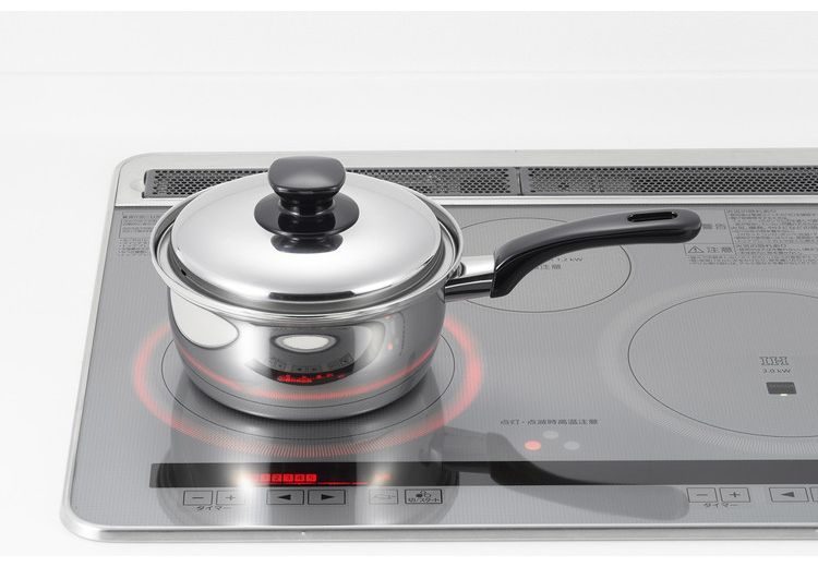 熱効率のよい3層鋼仕様。ミラスティステンレス3層鋼鍋シリーズ。耐久性に優れた18-10ステンレスの間に熱の伝わりのよい特殊軟鉄を挟むことで、素早くムラなく熱を伝えます。ステンレス加工の産地である新潟県の県央地域で材料確認をした素材のみを使用し、製造しています。底がスリム形状で、安定したスタッキングが出来るので、スッキリ収納可能。安心の5年保証!安心・安全の日本製。(財)製品安全協会「クッキングヒーター用SG基準」クリア。ミラー仕上げの美しいデザイン。